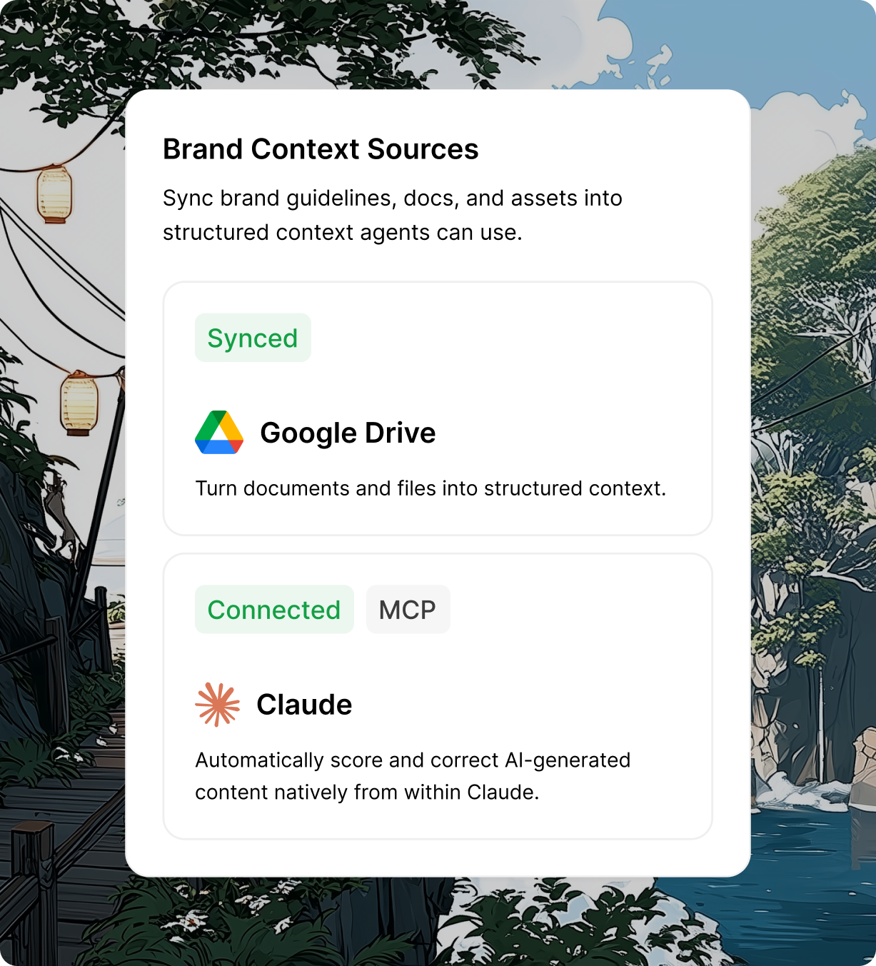 Store and retrieve your org’s structured brand context automatically through MCP, API, or SDK.